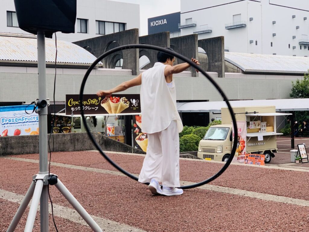 彼の演技はシルホイールと言う大きなリングと一体となって踊る、アクロバット?パフォーマンス。