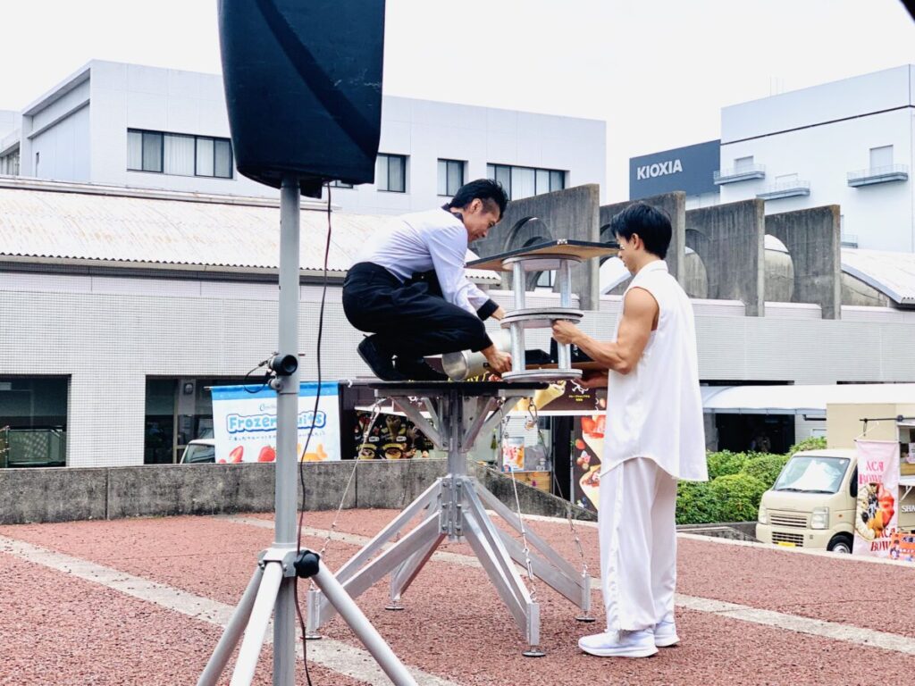 そして、今回誘ってくれた大道芸人快斗。ジャグリングからめっちゃ高い場所でのバランス芸、加えて、軽快なトークで大人気。