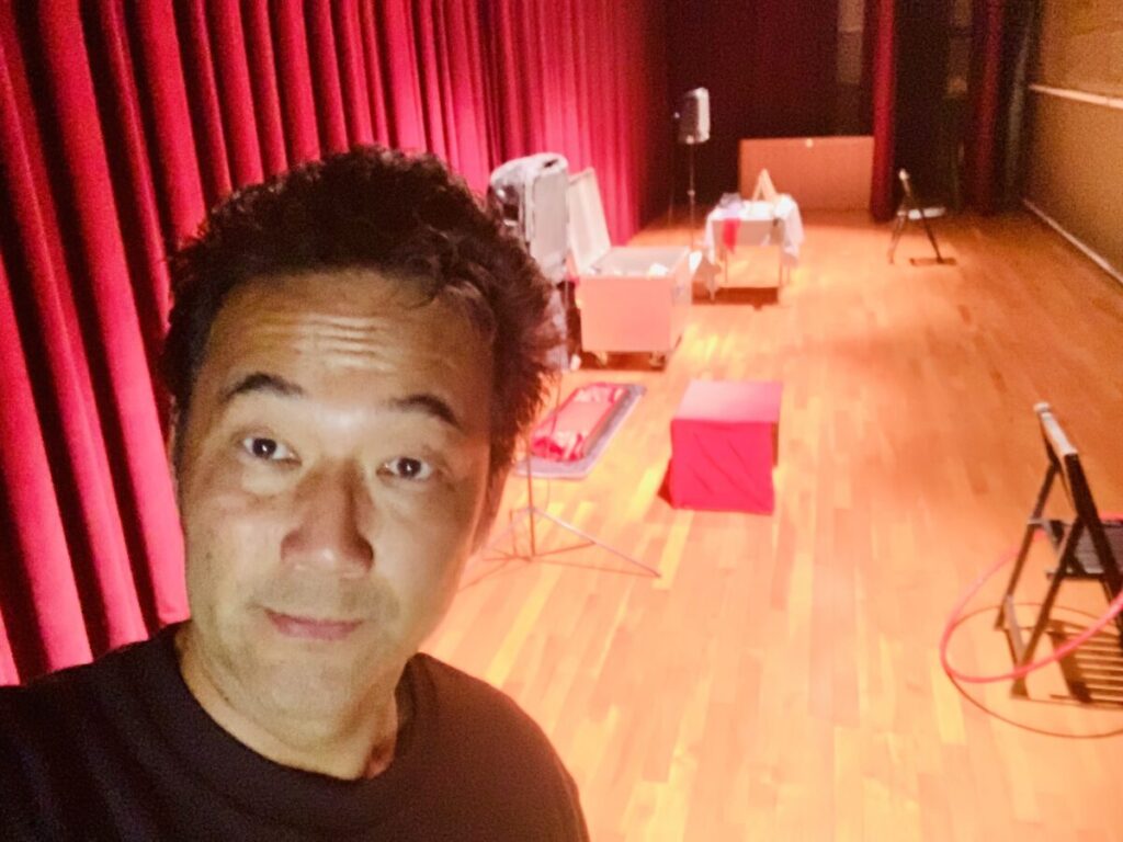 ショー後半のチェアイリュージョンで、まさかの社長が立候補。体重制限で(僕が抱えられないので笑)丁重にお断りして、良さげなお客様にお願いして・・・社長、すみませんでした( ̄▽ ̄)。