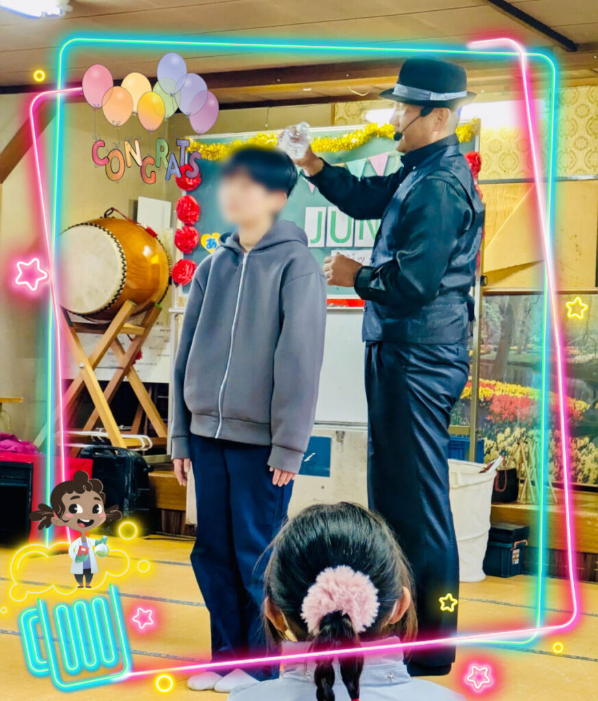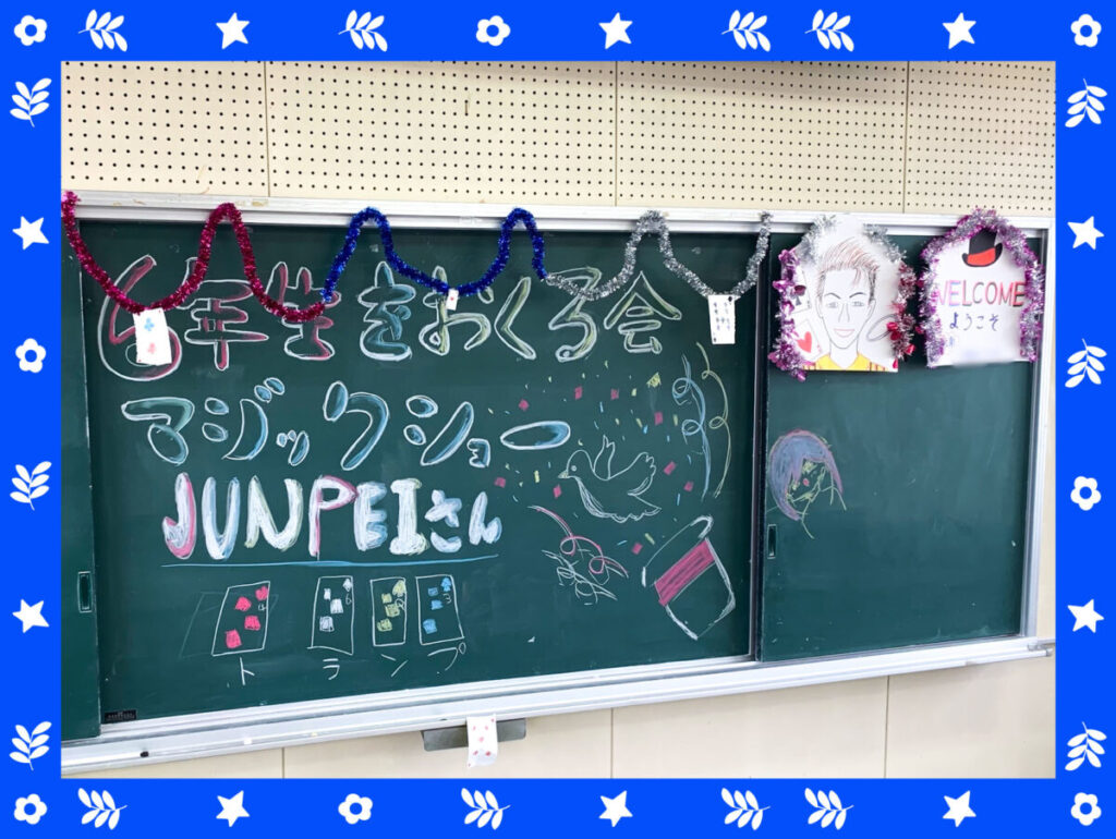 今回卒業を控えた6年生にもマジックお手伝いしてもらって・・・めっちゃイケメン。初めは恥ずかしがってましたが、途中から沢山笑顔を見せてくれて嬉しかったよ♪