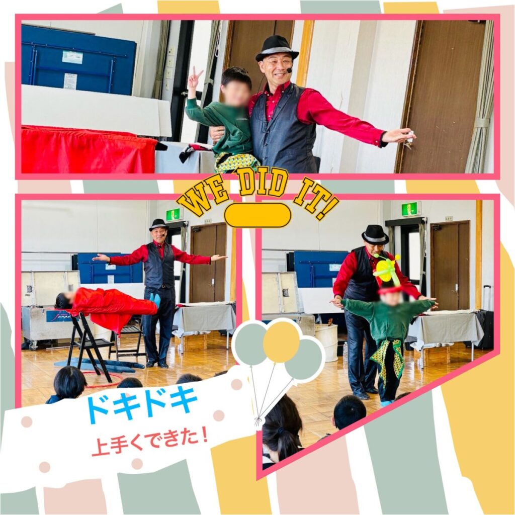 ちょっとこわいマジックも、少しビビってましたが笑、難なくこなし?、浮遊体験のイリュージョンも大成功!